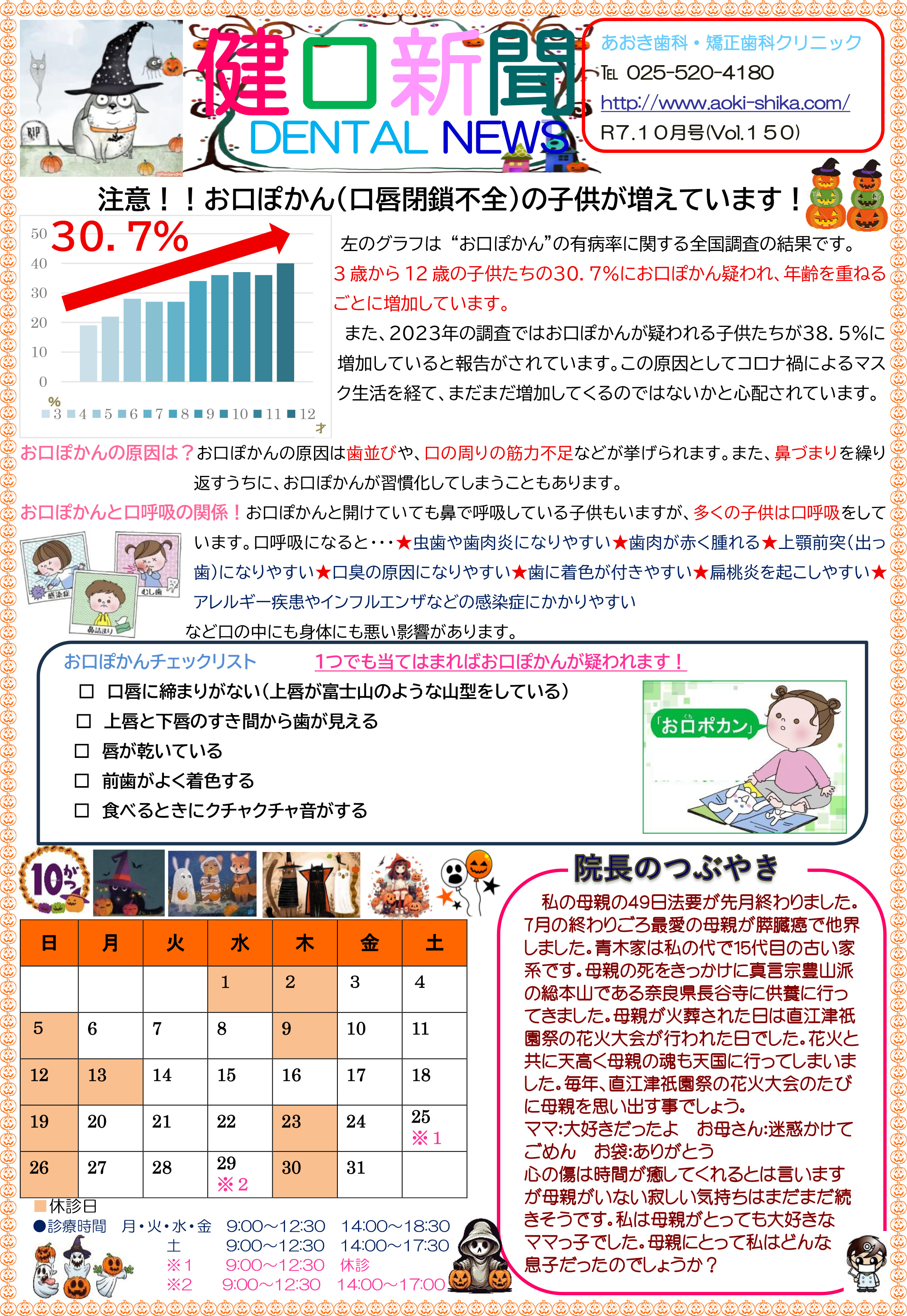 あおき歯科・矯正歯科クリニックから毎月役立つ情報をお送りする「健口新聞」です。ぜひご覧ください。