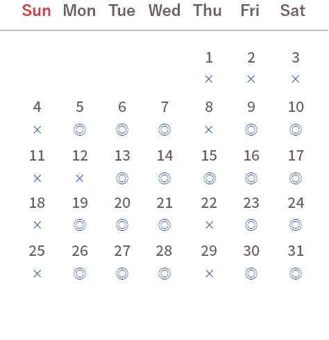 14:00-18:30 | ○ | ○ | ○ | × | ○ | ▲ | × |